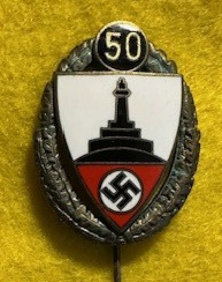 Original Nazi Kyffhäuserbund War Veterans' Association 50-Year Membership Badge Stickpin