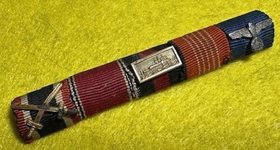 Original Nazi Five-Ribbon Bar with Three Metal Devices (WWII Veteran Bring-Back)