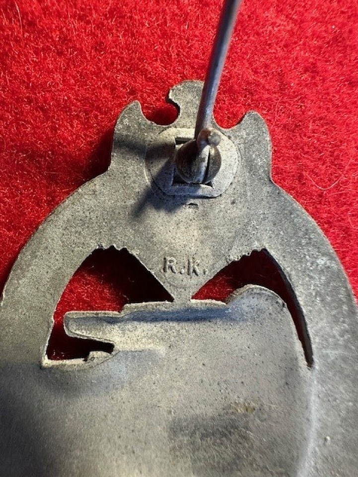 This is a near excellent injection-molded heavy grey metal belt buckle with the steel sizing bar and prongs. This belt buckle is RZM maker-coded "M4/22" (Christian Theodor Dicke maker). Item #1202-1